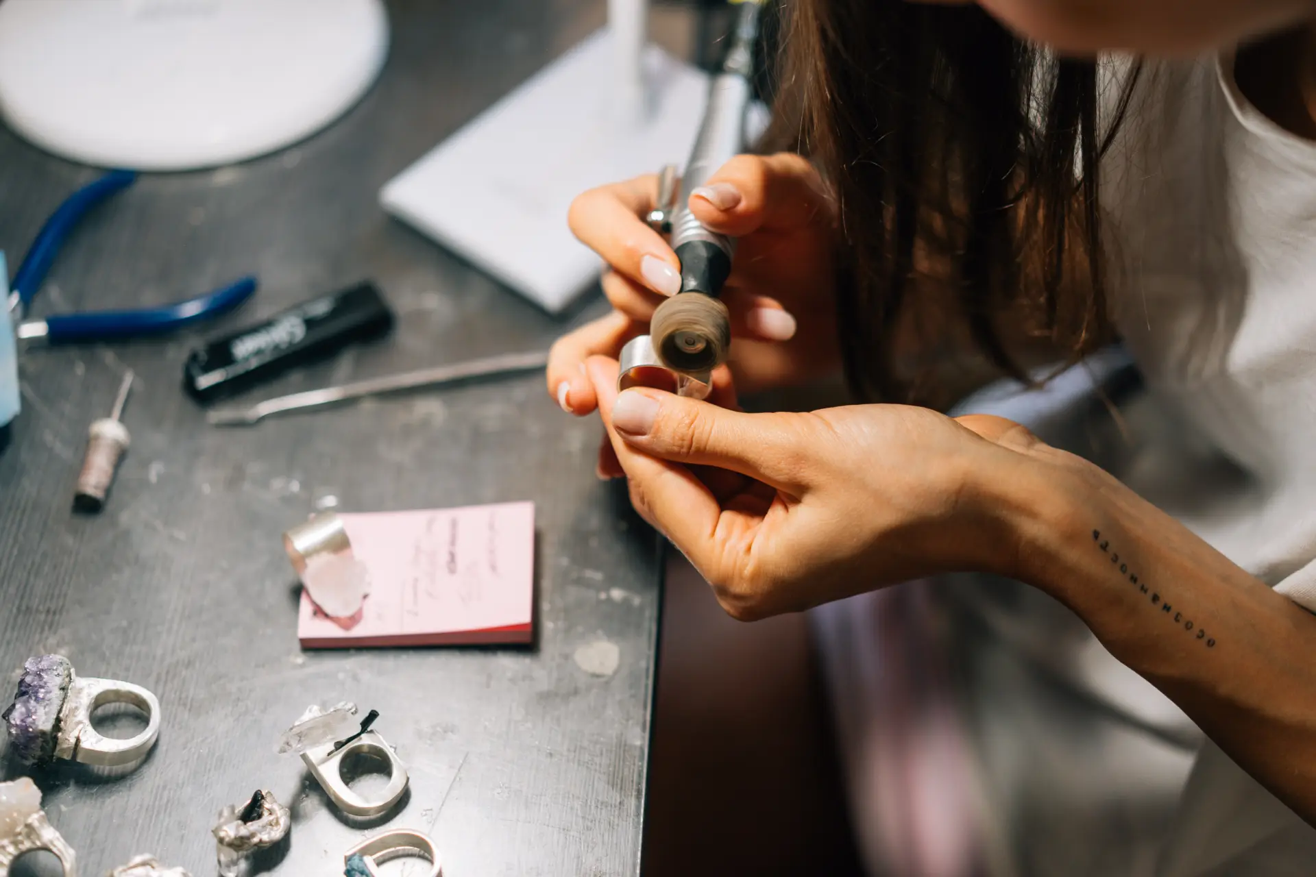• Mann beim Arbeiten mit einem elektrischen Schraubenzieher